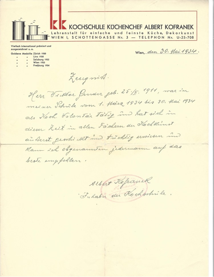 Well, with that a very tough period started. My father’s practice was shut because of his health, because of the event, and it was quite clear that I had to do something to keep the family going. My mother, in her quiet and efficient fashion, took over. She decided to rent some of the rooms in our apartment and — sub-let them — and I tried to get something going and I realized that I had to leave Vienna, soon, because it was quite clear that there was no future for me in Vienna. I figured out that perhaps the hotel business would be something for which an Austrian background might be a recommendation. I went to a cooking school, to Mr. Kopranek.