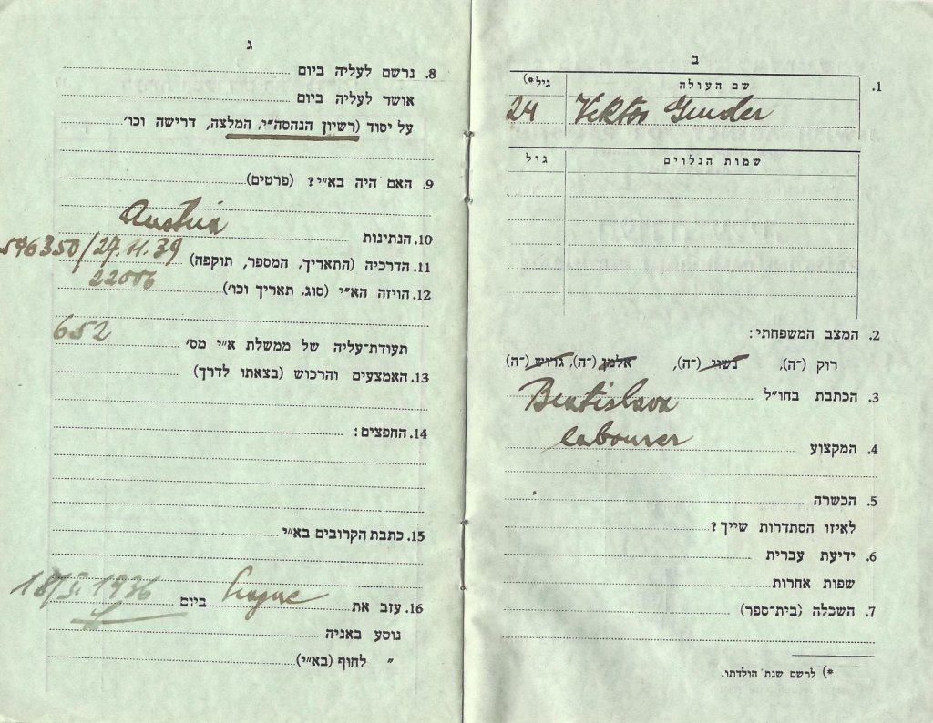 Well, back to my story. I knew I had to leave Vienna and somehow the idea came — it was a rather obvious idea to hit me — perhaps I should try my luck in Palestine and, through connections with the socialists in Prague where the Austrian underground socialists had their headquarters, in sort of a government in exile. And I went to Prague to get a certificate which was an entry visum into Palestine, but it took some time to get this.