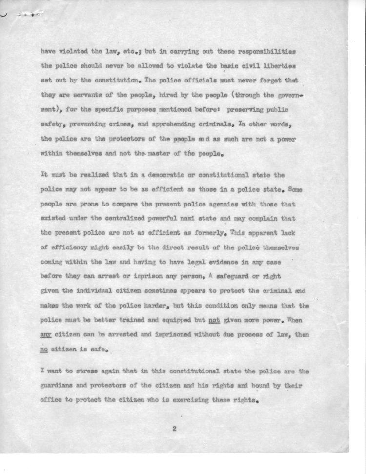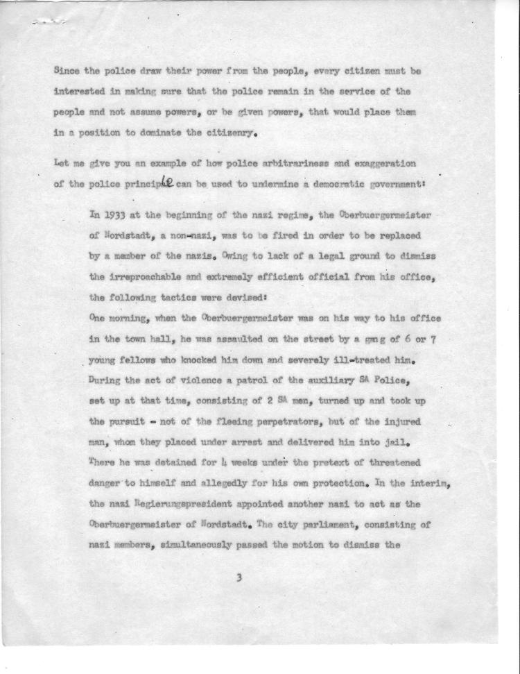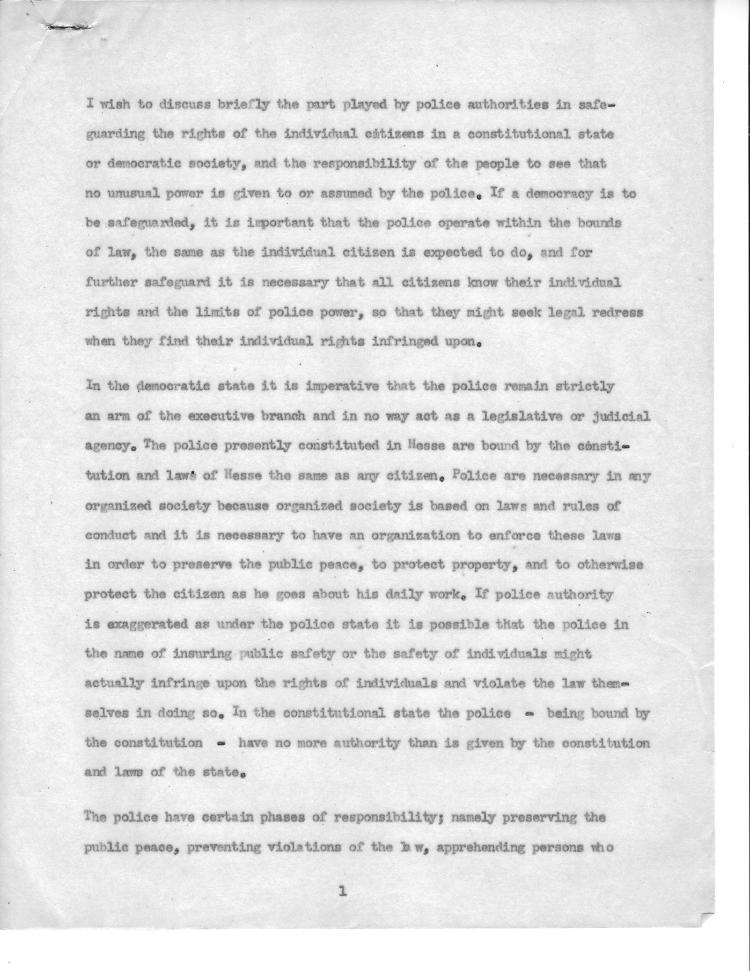 I did a lot of talking in my job and part of it was fascinatingly interesting. You know, we were a very enthusiastic bunch in military government. The idea of educating people to the democratic process was an exciting one, and we set about it with no cynicism and lots of enthusiasm. And particularly one thing became a crusade, in which I played a major role. The subject was Gewerbefreiheit in German. In English: “Freedom from Licensing.” That requires an explanation. There was not one occupation, not one field of activity, of human activity, in Germany which wasn’t subject to a license. That is, in order to do that job, you had to be licensed by somebody. And to give you extreme cases, there was a poor woman from East Germany, a refugee from East Germany, who repaired men’s underwear on her sewing machine, and she was actually called before a court because she exercised this profession without a license.