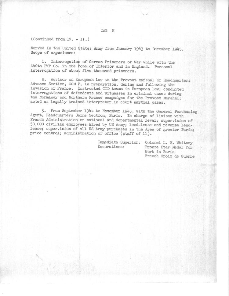 They were looking now for a replacement and the Deputy Military Governor of Hesse, Frank Sheehan, interviewed a number of people. George Fleischer, one of them;