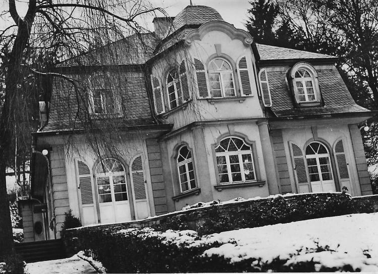 Well, in about March 1949 we moved from the smaller house to the big one, that lovely house which had been built as a wedding present by the owner and patent-holder of the German version of the Band-Aid, a very rich man who built it for his son. It was pink. It was called The Little Castle.