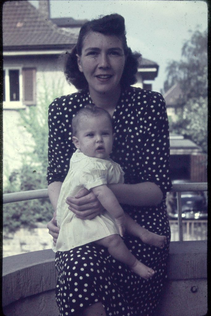 It is difficult to describe the social status one enjoyed being in military government in a relatively small city. Perhaps this will illustrate it. We once were at the opera, and the next day we talked about it to Irmy and she said, “Oh, I know that you were at the opera.” I said, “How do you know?” “You had been seen.” “What do you mean, ‘We had been seen?’ By whom had we been seen?” She said, “By somebody you don’t know.” “I don’t know the person?” She said, “You don’t realize but you are known in Wiesbaden.” Well, that gives you a bit of the flavor. [ed: Irmy was Irmgard Finsterwalder, who looked after Monica in her earliest years. Eventually, Irma left her employment with the Gruders, married Jürgen Stein, had two children with him, and became a very accomplished public school teacher. Jeanette called her “very modern,” a “rebel,” and an “amazing person.” The Gruders and Irmy stayed in touch and visited each other for the rest of their lives.]