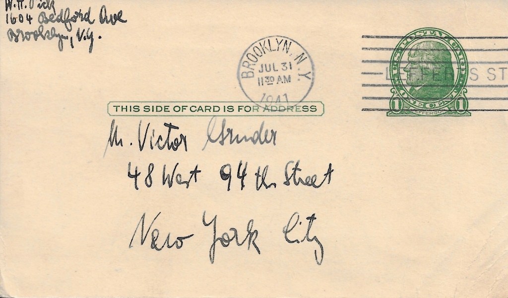 I believe several of our dates had to be called off or postponed because of job interviews that one or the other had to go to. But we saw much of each other for a few weeks. Jeanette who had lived, at that time, at the house of her aunt, the mother of Ruth Melzner, she had good reason of wanting to get out of there and as quickly as possible.