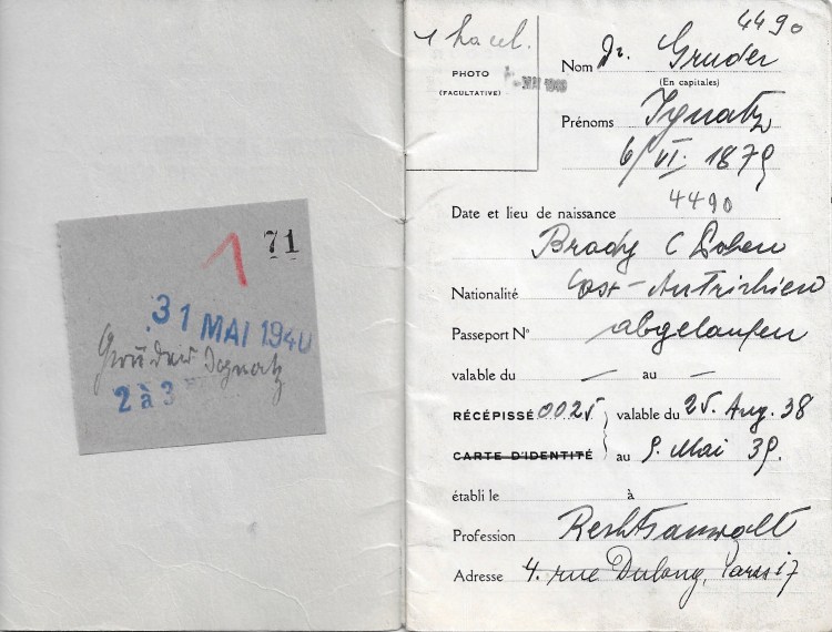 But that wasn’t enough to live on and there again luck was in my favor. I went to a Viennese lawyer who had years ago emigrated from Vienna to Paris and was one of the lawyers of the Austrian embassy. [ed: Roberto Reich, lawyer to the Austrian legation in Paris before the annexation of Austria.] He had emigrated because he was a homosexual, and it was easier and more convenient and less frowned upon to be that in Paris than in Vienna. And, of course, he was also a socialist (nominally a socialist,) and knew my father and professed great admiration for him, and he declared himself prepared to hire me as an office helper. Well, very quickly I became his assistant because it turned out that he was extremely lazy, and I ran the office. I believe I told you this in another context, how we represented Austrian refugees and how, luckily, I once unexpectedly had success with an appeal and our practice flourished, so I won’t repeat it again.